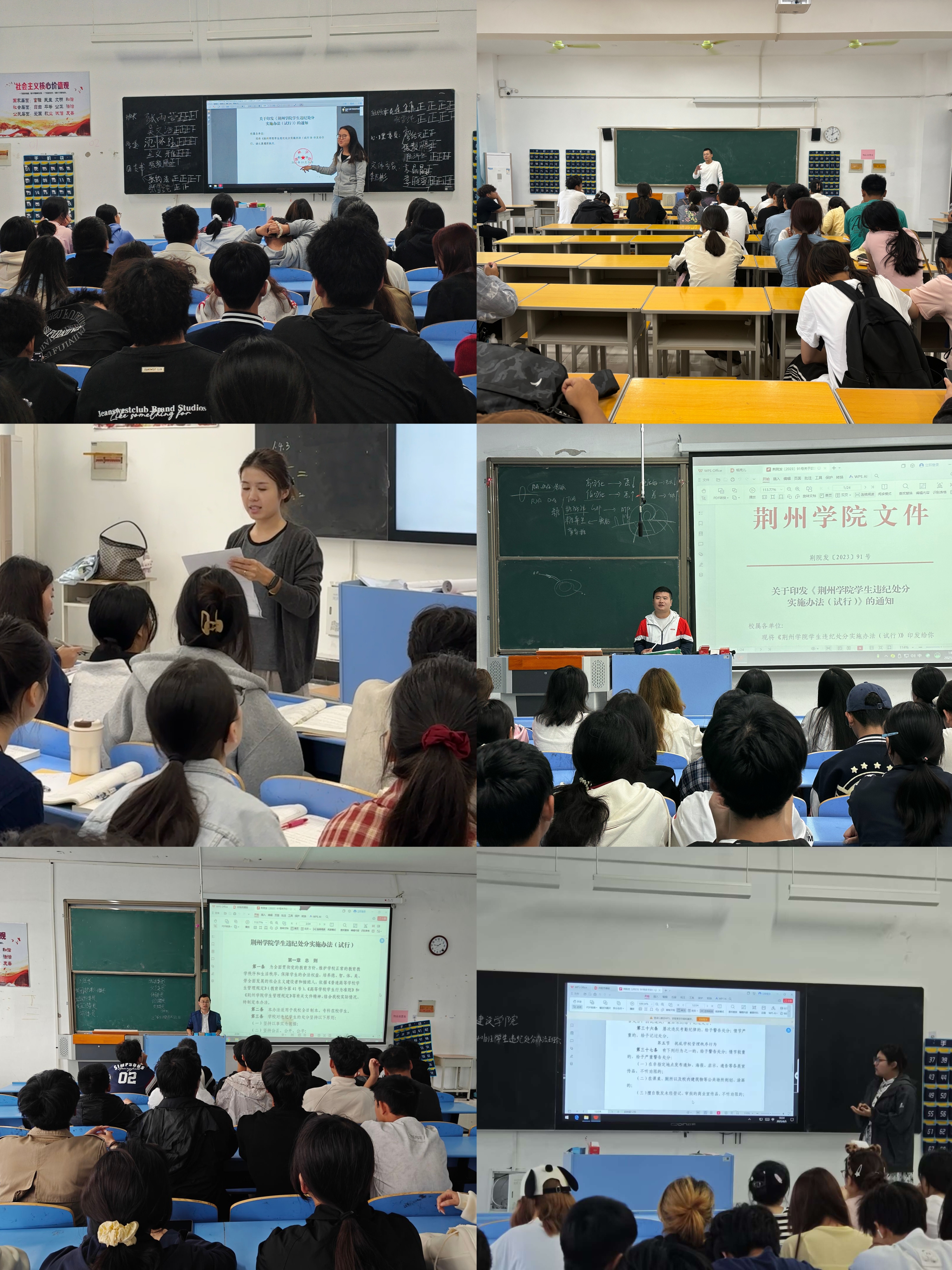 学院结合学生学习生活实际,精准筛选学习内容,重点围绕《荆州学院学生管理规定》《荆州学院学生考勤及请假管理规定》《荆州学院学生违纪处分实施办法(试行)》《荆州学院考试违规处理办法》《荆州学院学生纪律处分解除规定》及评奖评优相关细则展开,提前通过班级群、学习平台等方式推送文件原文与图文解读材料,方便学生利用碎片化时间自主预习。