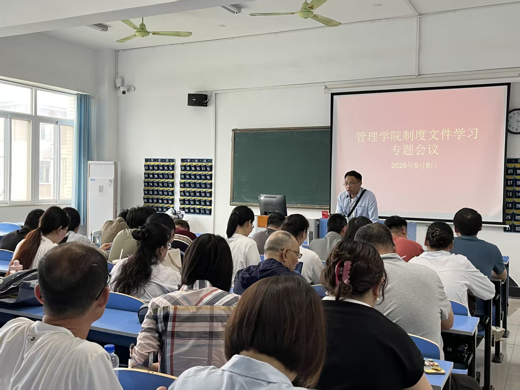 此次制度文件学习专题会议的召开,不仅有助于管理学院全体教职工进一步统一思想、明确职责,还为营造规范有序的工作环境,提升学院整体管理效能奠定了坚实基础。未来,管理学院将持续加强制度建设与学习,不断优化管理机制,以更加严谨、规范、高效的工作作风,开创管院发展新局面。