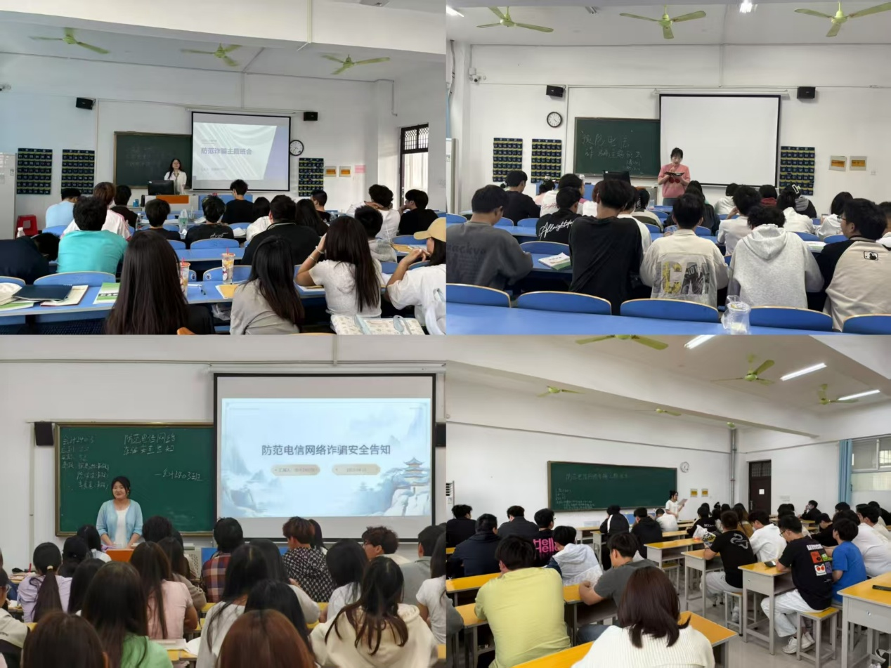 班会伊始,各辅导员围绕什么是电信诈骗、电信诈骗常见类型、电信诈骗现状及如何预防电信诈骗四个方面,以理论知识与案例分析相结合的方式,让同学们深入了解了电信诈骗的常用手段。随后,辅导员向同学们普及了防范电信网络诈骗的方法,要求同学们做到“不轻信、不透露、不转账、不侥幸、多核实”。最后,希望同学们正视电信网络诈骗,提高警惕性,不仅要在思想层面筑牢防范电信网络诈骗的坚固防线,更要将防范意识切实转化为日常行动,真正做到知行合一,共同创建安全、和谐的校园环境。