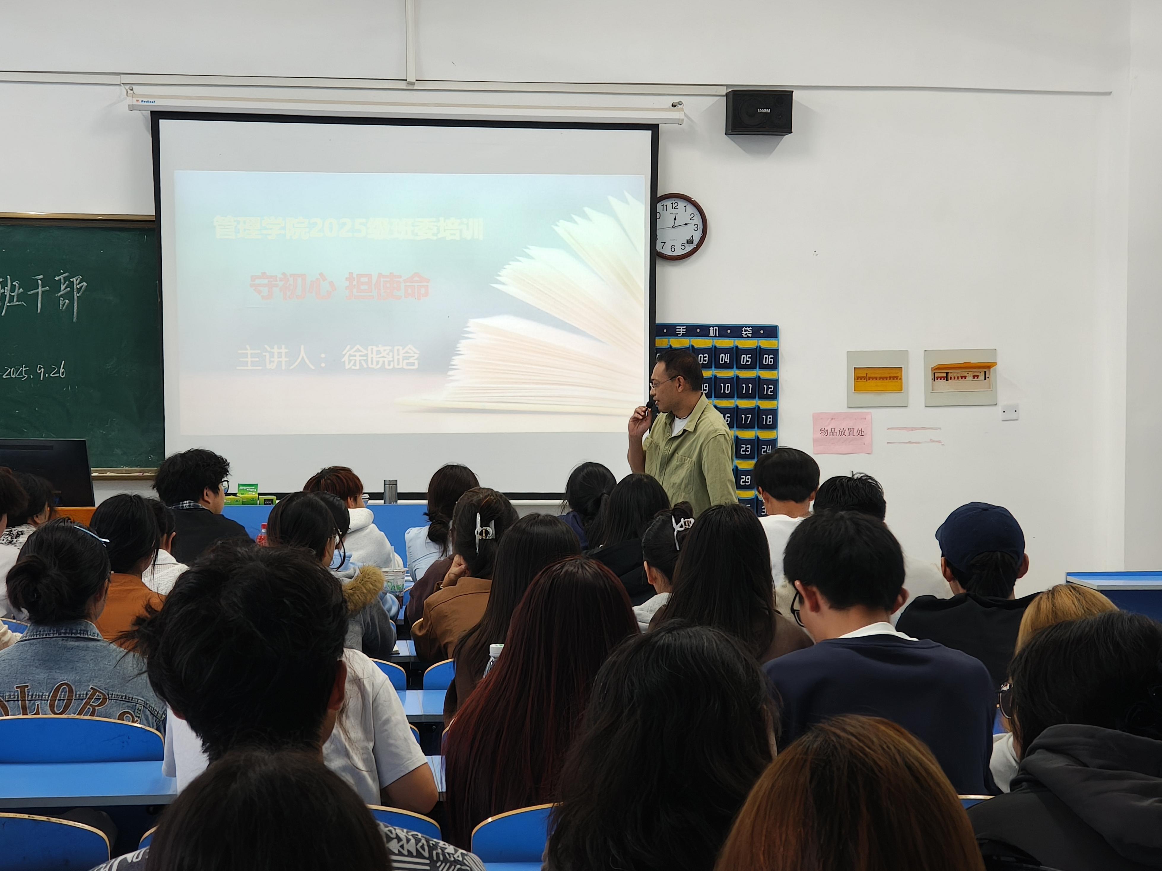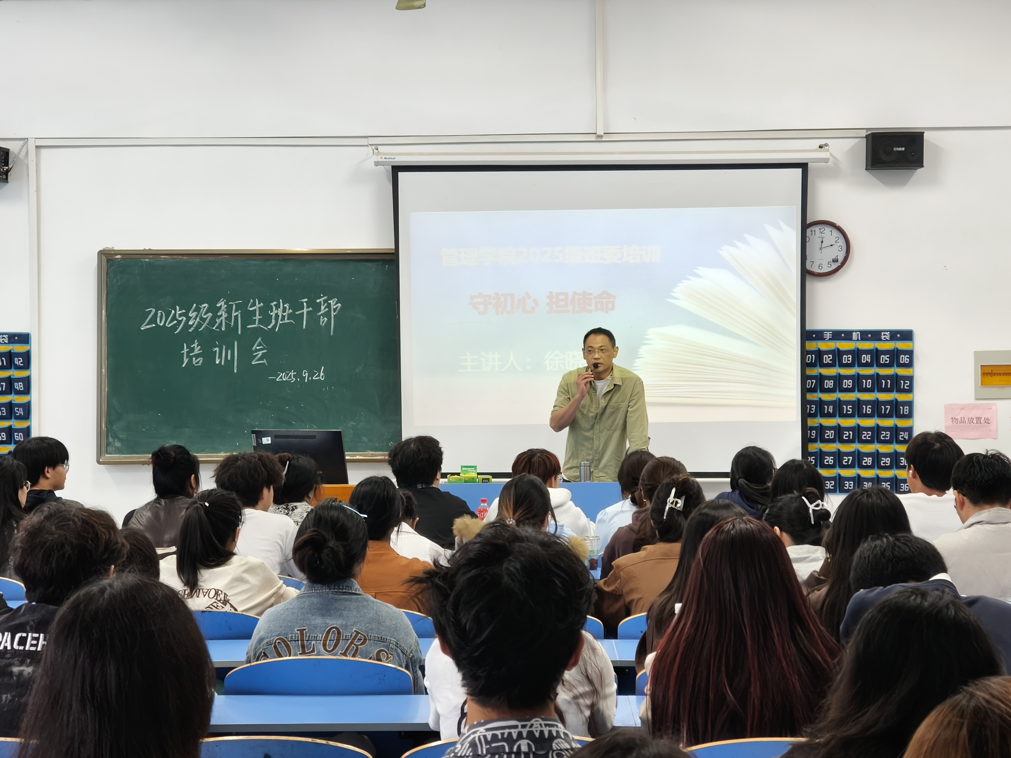 本网讯(通讯员:尹钰婷)为帮助新生班干部快速明确职责、提升管理能力,筑牢班级建设根基,加强各班班干部之间的凝聚力。管理学院于9月26日中午在6405教室成功开展管理学院2025级新生班干部培训会。本次会议由管理学院副院长徐晓晗主持,全体25级班干部参加。