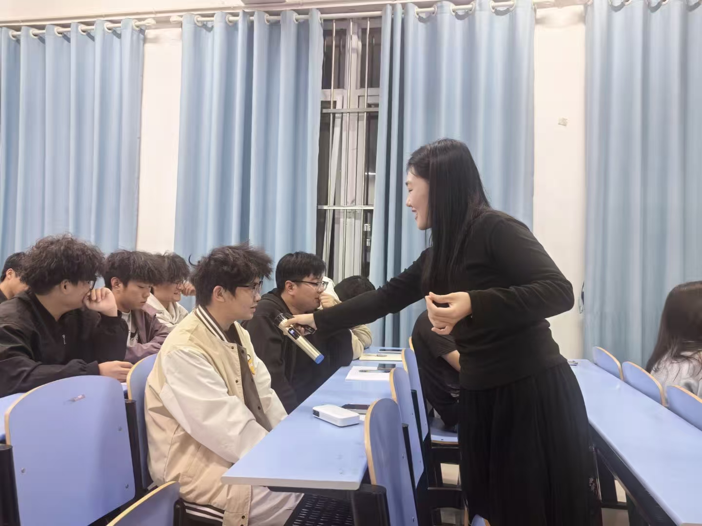 随后,汪老师针对“如何关爱他人”这一核心议题,引入“小雯的故事”案例分析,引导学生干部从情绪言语、行为身体、社交学业三个层面,学习识别同学可能存在的心理困扰信号。在互动研讨环节中,大家积极分享帮扶思路,提出“主动陪伴安慰”“搭建社交桥梁”等具体方法,体现出学生干部作为“离同学最近的观察者”所具有的责任。他们不仅是师生之间的沟通纽带,更是心理健康工作深入学生群体的重要触点。为提升学生干部的实际助人能力,汪老师还组织了“倾听与复述”互动练习。通过两人一组的实操训练与开放性提问技巧的运用,大家亲身体会到“用心倾听”在心理支持中的关键作用,进一步掌握了如何运用心理健康知识,在日常工作中做到以慧眼觉察需求、以行动传递温暖。