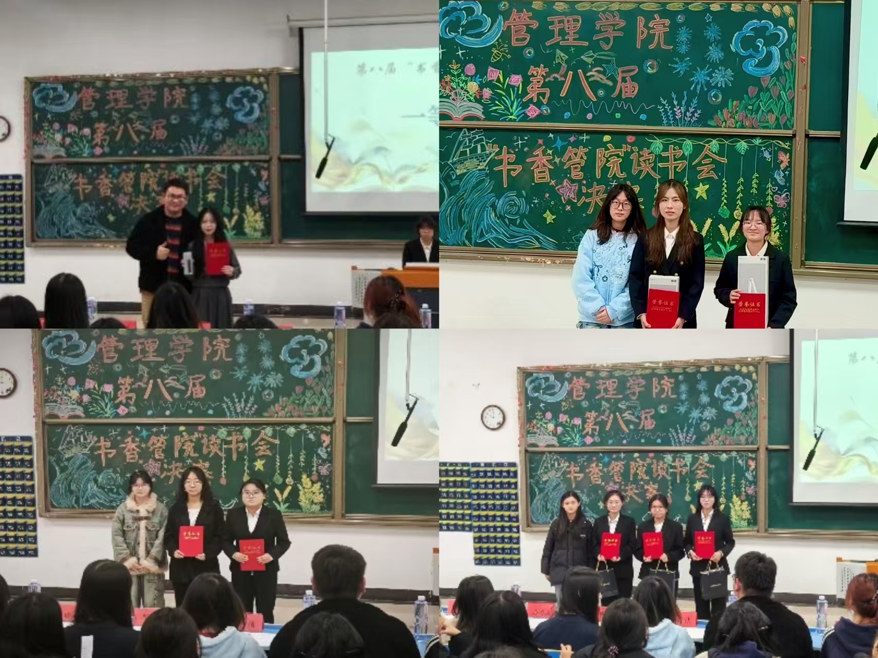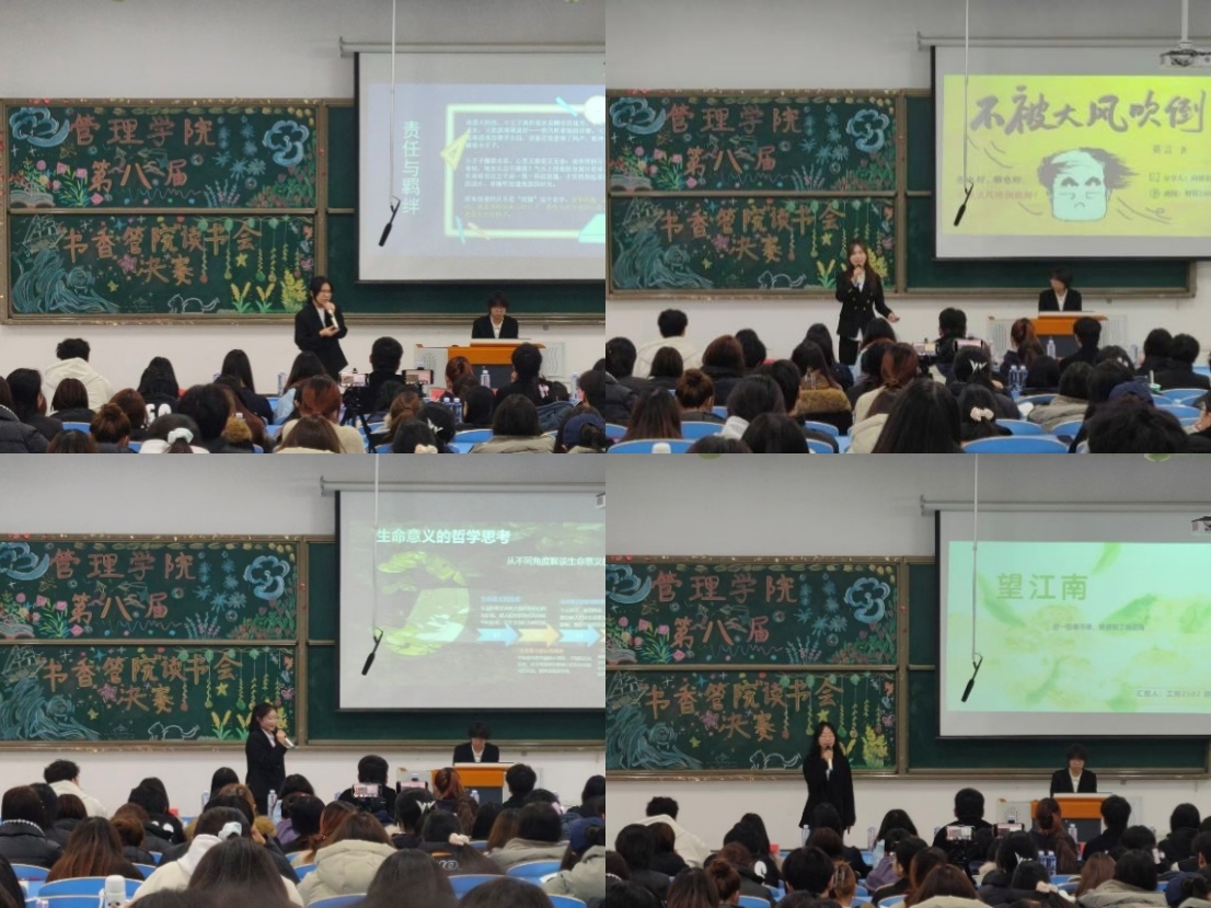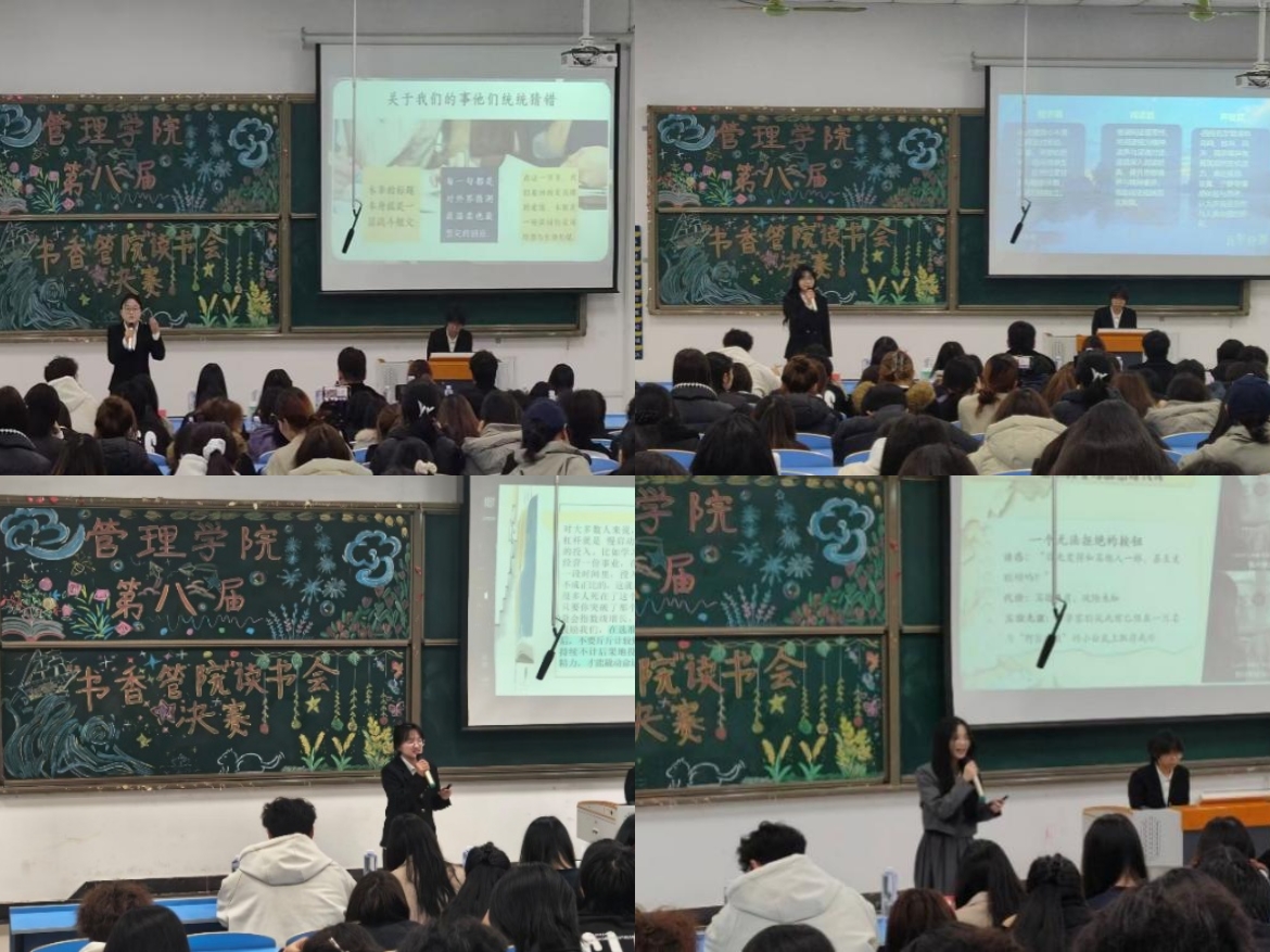 本网讯(通讯员:杨紫倩)“书中自有黄金屋,胸藏文墨怀若谷。”为营造“爱书、品书、悟书”的浓厚氛围,搭建思想交流与知识共享的平台,管理学院于11月19日晚在5205教室举办第八届“书香管院”读书会决赛。管理学院团总支书记季诚老师,管理学院团总支学生会副书记彭思洁,健康医学院团总支学生会副书记董宇航,城市建设学院团总支学生会副书记王媛媛,教育学院团总支学生会副书记郝新晴,信息工程学院团总支学生会副书记马晓娟,校团委学生会主席徐正秋,智能制造学院团总支学生会主席汪璨担任本次评委。