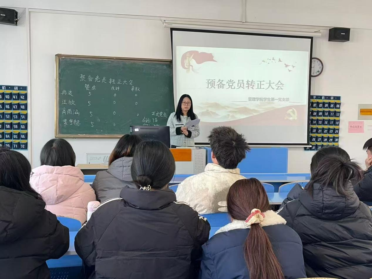 管理学院学生第一党支部召开预备党员转正大会