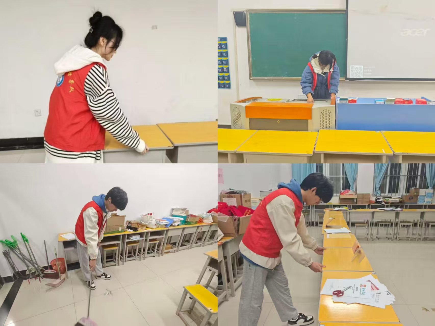 活动伊始,志愿者们准时在六栋教学楼前集结。负责人给大家明确清洁标准后,同学们迅速投入清扫工作中。整个清扫过程,同学们相互配合、各司其职,经过同学们的打扫,六栋教学楼的教室、走廊等公共区域环境卫生得到显著改善,呈现出整洁有序的面貌。