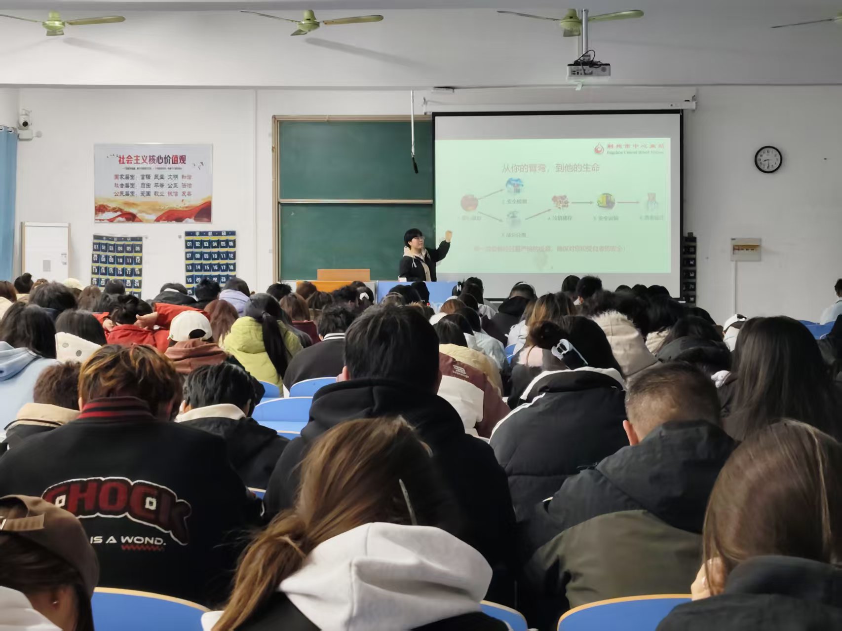 本网讯(通讯员:田润琳)为打破无偿献血认知壁垒,激活青年群体公益热情,12月3日,荆州市中心血站裴家梦老师走进教学楼1201教室,为管院学子带来一场干货满满的义务献血知识讲座,以专业科普传递生命温度,为青春注入公益正能量。
