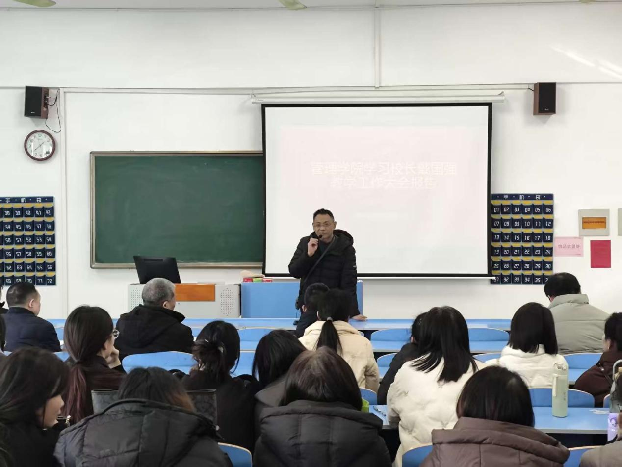 本网讯(通讯员:邱衍众)为建设高水平应用型区域强校,打造数智化教学课堂,管理学院于12月26日下午在6407教室组织召开戴国强校长教学工作大会报告专题学习会,本次会议由管理学院副院长徐晓晗主持,全体教职工参与。