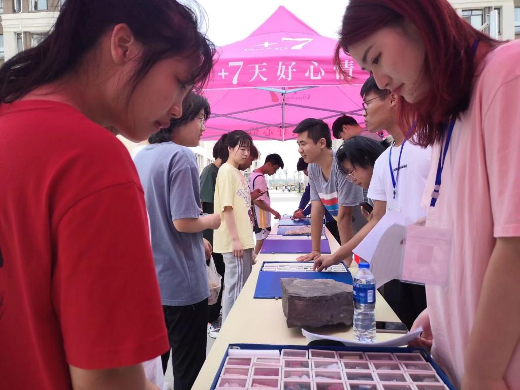 这些形态各异的岩石,生动地向师生们诉说着它们在漫长的地质历史时期中历经的岁月往事。石以砥焉,化钝为利。一件件标本、一颗颗化石吸引着来往师生的视线。不少同学不仅在参观过程中用手机拍下一张张珍贵的照片,更是发扬“打破砂锅问到底”的求知精神,抛出一个又一个问题询问现场讲解员。