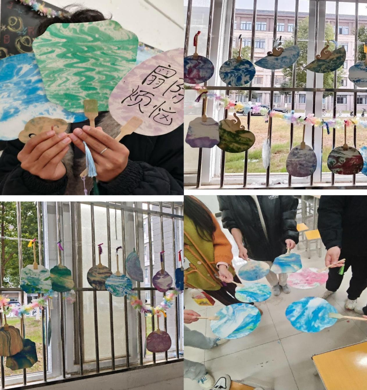 活动尾声的分享环节同样精彩纷呈。同学们纷纷表示:“漆扇创作就像情绪的具象表达,完成作品后感到特别放松。”党总支书记王艳在总结中指出:“此次活动是‘五育融合’理念下的创新实践,通过传统工艺将美育与心理健康教育有机结合。未来我们将持续开展此类特色活动,构建更加多元的心理健康支持体系。”