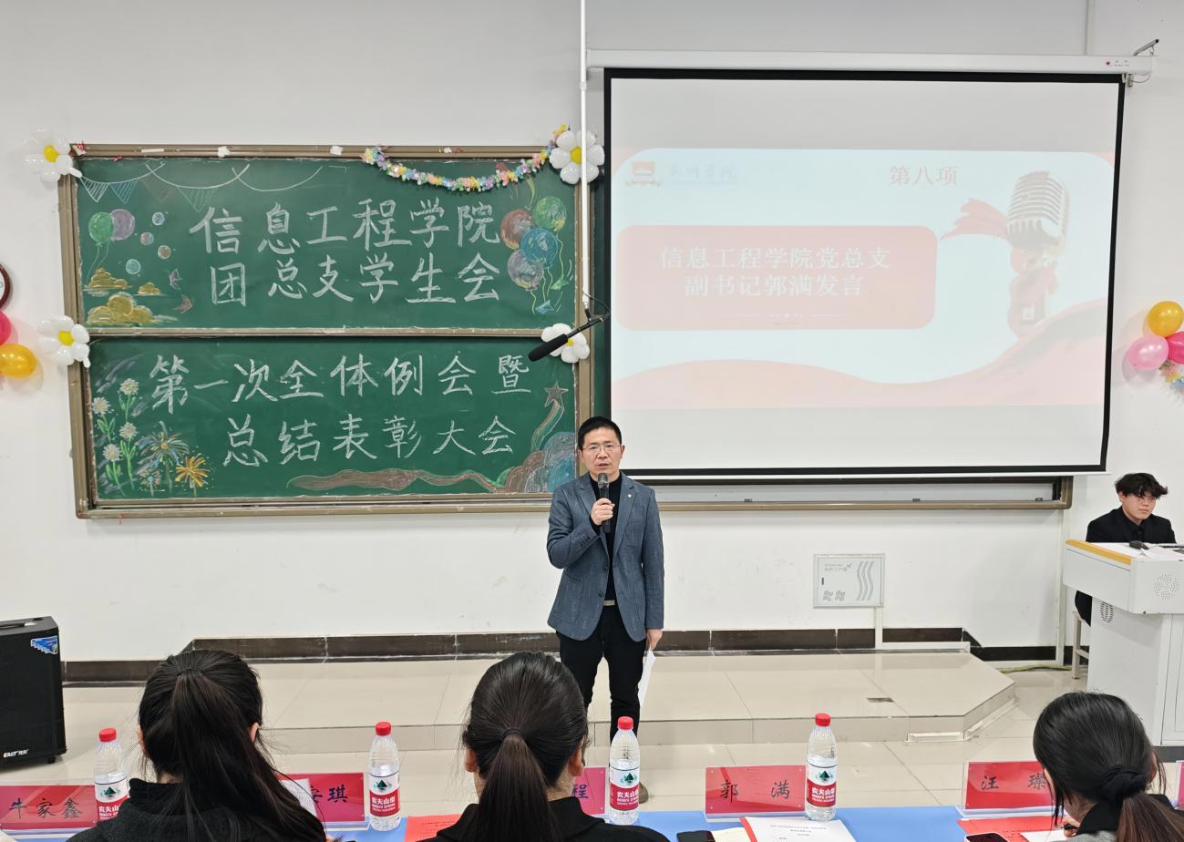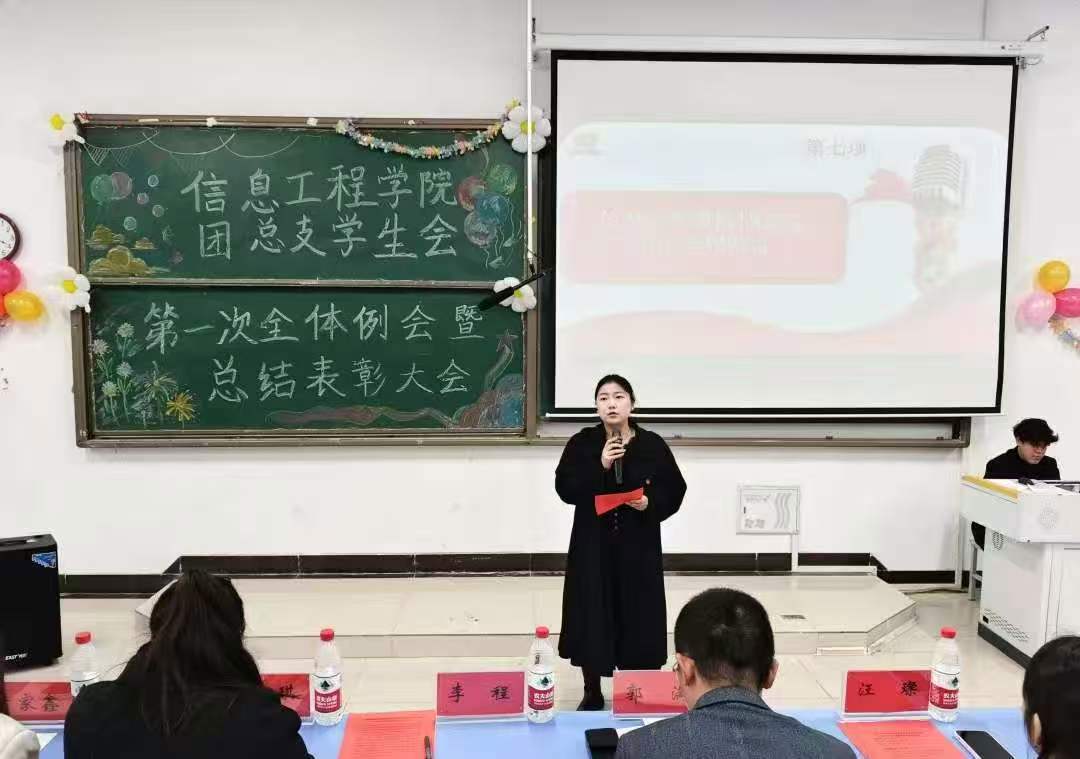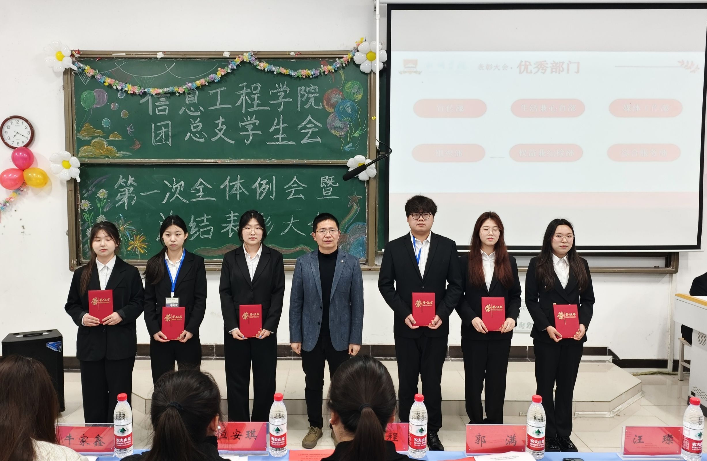 本网讯(通讯员 马晓娟)为总结过往工作、表彰先进典型,凝聚团学工作合力,明确新学期工作方向,2026年3月26日,信息工程学院团总支学生会第一次全体例会暨总结表彰大会在教学楼3205教室圆满举行。