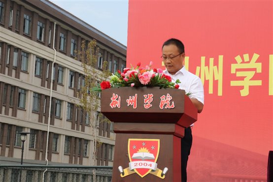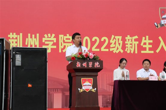 本网讯(学生记者 张欣 柳佳靖)9月17日上午,学校在田径场举行2022级新生入学教育暨军训动员大会。荆州军分区战备建设处龙思玄中校,学校副校长付秋峰、武装部部长许明超、各分院党总支书记(副书记)、新生辅导员及2022级全体新生参加大会。大会由学校武装部部长许明超主持。