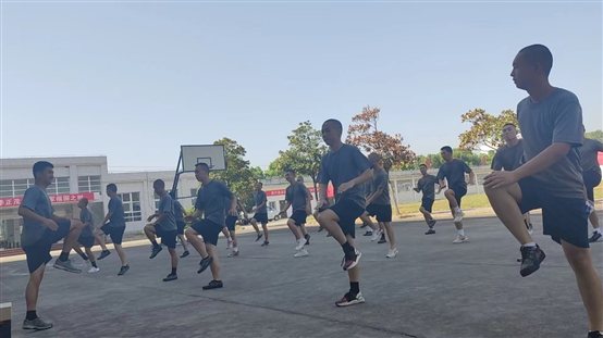 图为方俊同志正在组织预定新兵热身训练