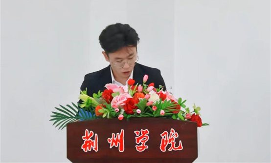 获奖学生代表袁泉在本次会议中分享了自己的参赛经验,他阐释了不断付出才会有收获的道理,倡导同学抓住机会,在实践中锻炼自己,勇担时代责任,提升自身综合素质。