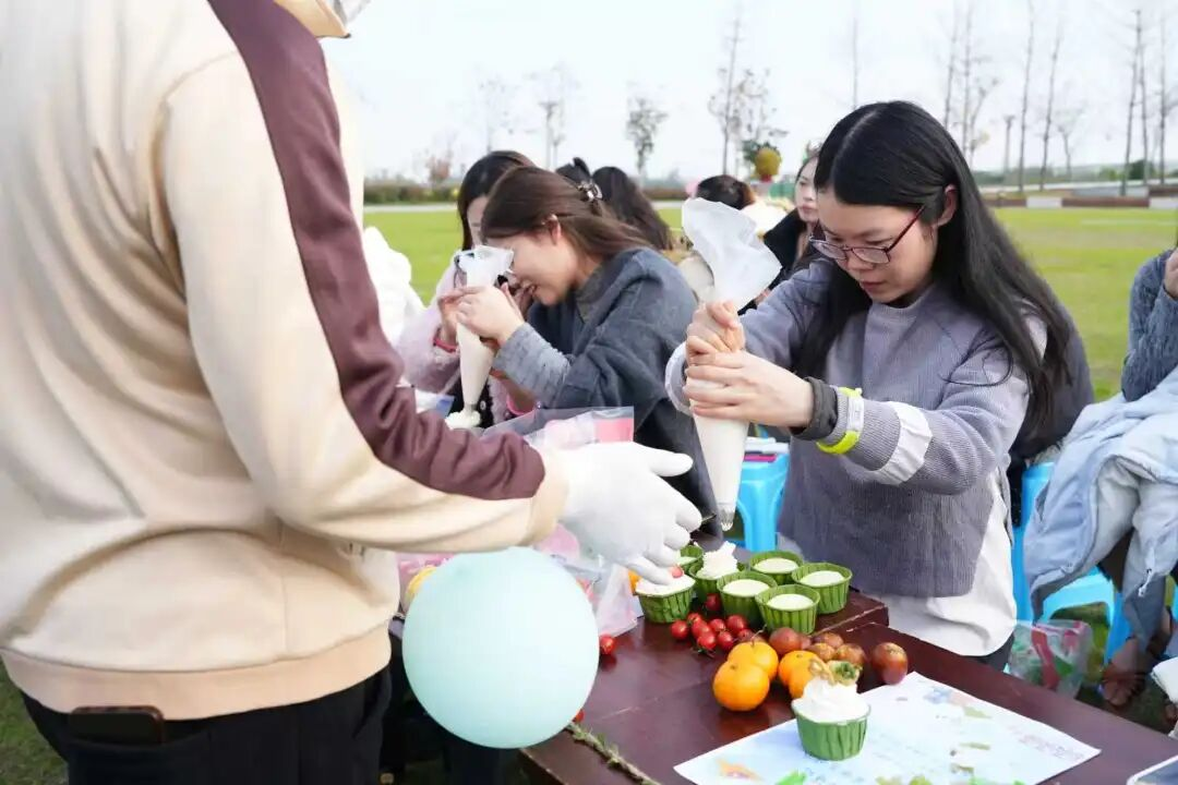 老师们亲手裱花、点缀果饰,创意打造专属甜蜜。欢声笑语中,定制蛋糕凝聚情谊,为生日会添上暖心滋味。