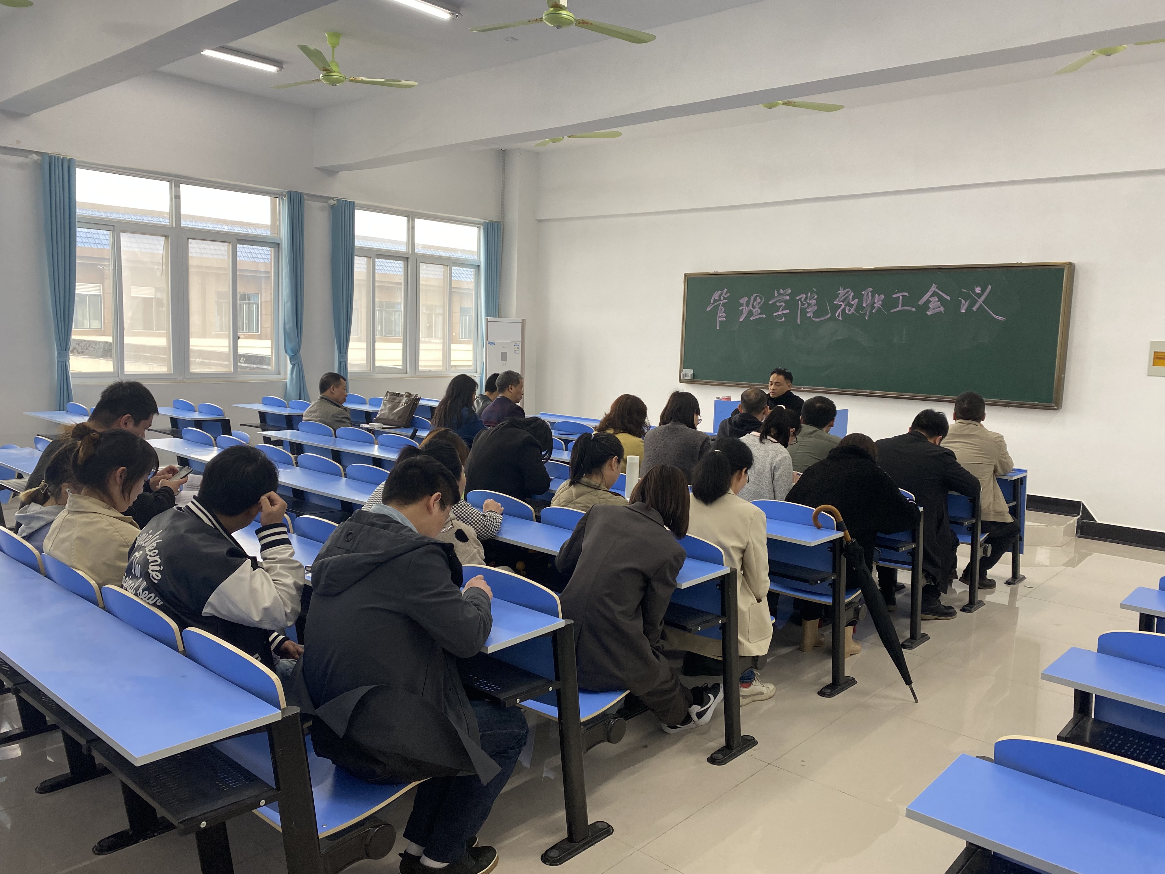本网讯 为进一步规范教师的从教行为,提高教师的道德规范与职业素养,树立教师的良好社会形象,4月15日下午,管理学院在J6508教室召开了加强师德师风建设专题会议。会议由管理学院副院长徐晓晗主持,管理学院党总支副书记冯尧及全体教师参加了会议。