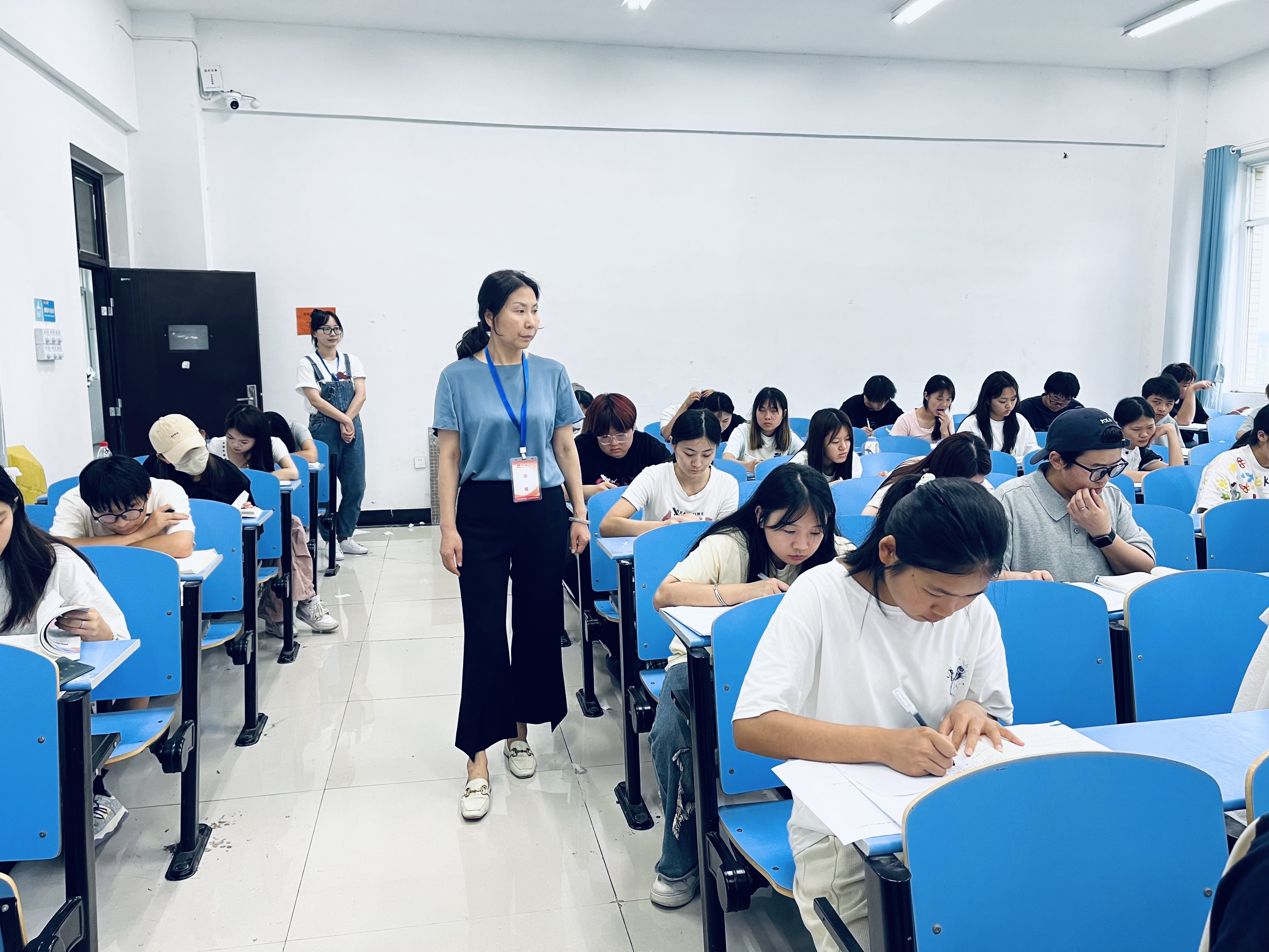 为进一步加强考风考纪建设,严肃考试纪律,确保期末考试工作规范有序进行,6月24日下午,校长戴国强、副校长聂好春、刘瑾带领教务处、教促办负责人组成巡考组,对全校期末考试考场进行了全面巡查。