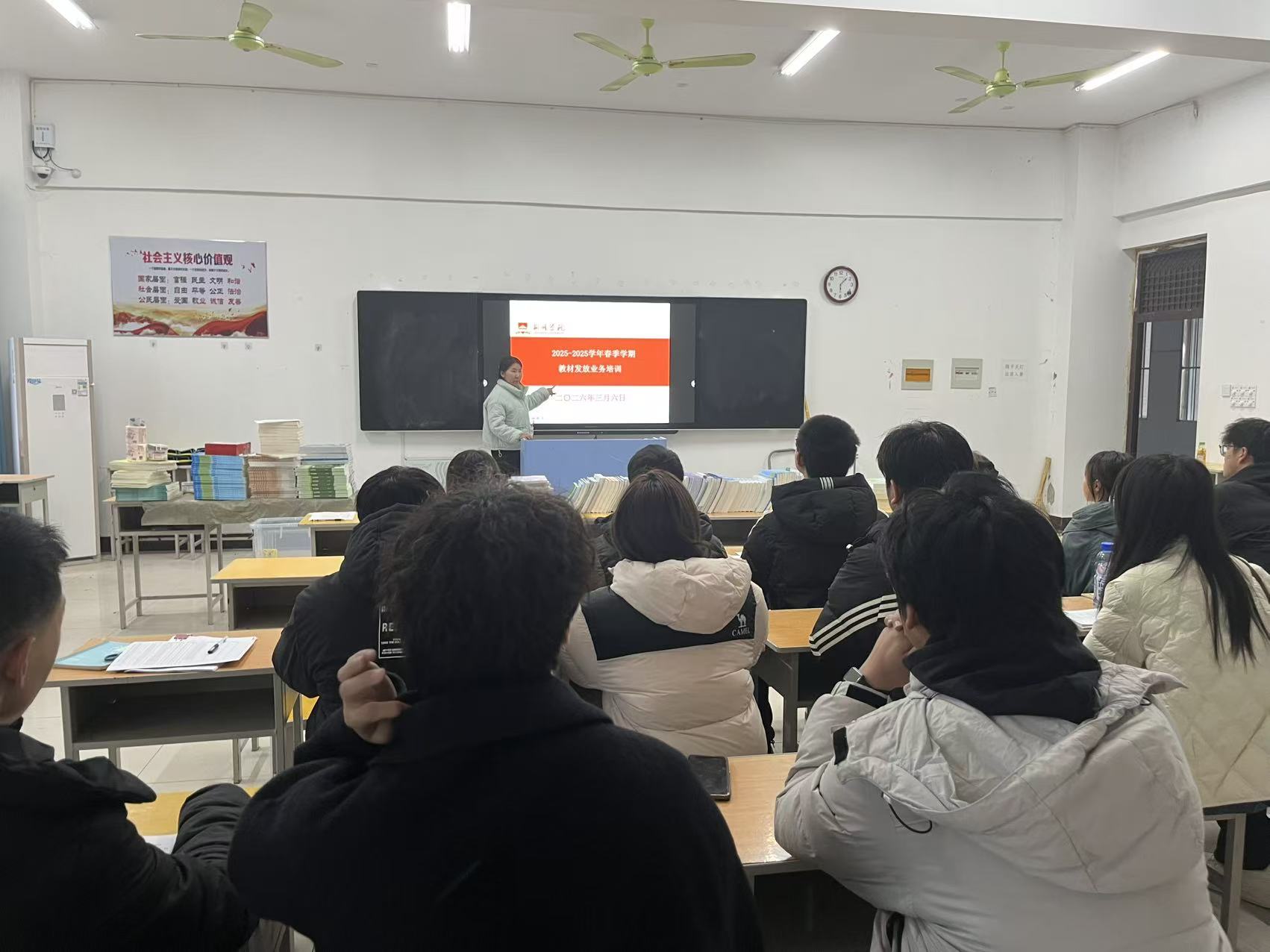 为保障新学期教学用书需求,规范教材发放流程,3月6日下午,荆州学院2025-2026学年春季学期教材发放业务培训在3103教室顺利举行。