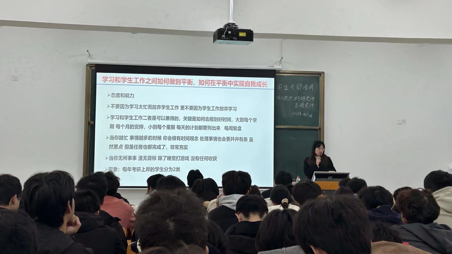 本网讯(通讯员 李文浩)为提升学生干部的综合素养与团队效能,智能制造学院学生会于11月13日18:30在教学楼7301组织了一场内容充实的学生干部专题培训。本次培训分为两大主题,分别由吕昕老师与柯婷老师主讲,旨在通过理论讲解、案例分析与互动交流,引导学生干部深入思考团队协作与个人发展的路径。