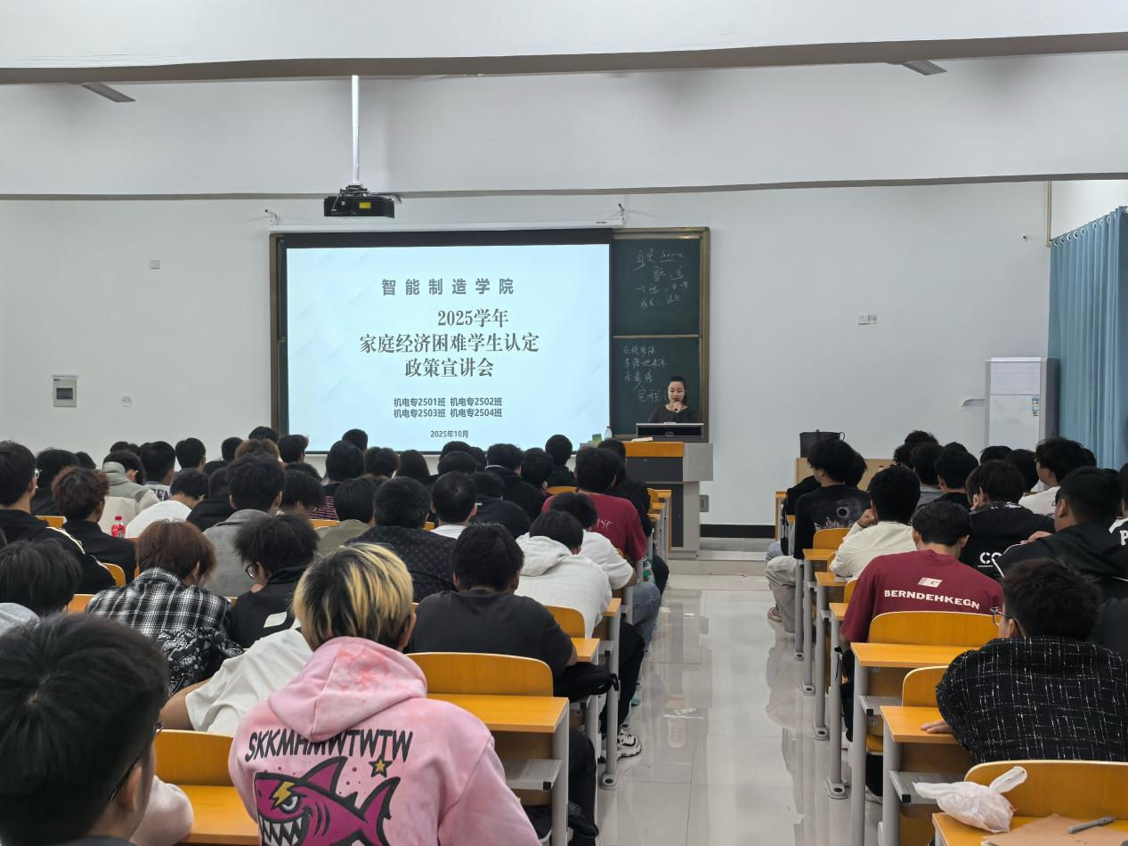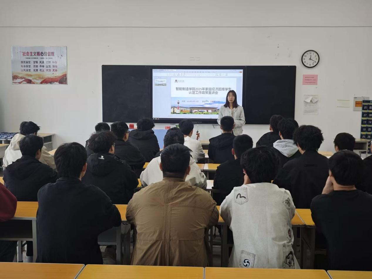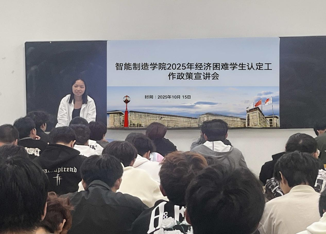 (本网讯 晏学渊)为确保国家资助政策精准落实,帮助家庭经济困难学生顺利完成学业,10月14日-16日,智能制造学院2025-2026学年贫困生认定工作正式启动。学院高度重视此项工作,积极部署,全面组织各班级召开贫困生认定工作政策宣讲班会,旨在让每一位学生深入了解政策,确保认定过程的公平、公正、公开。