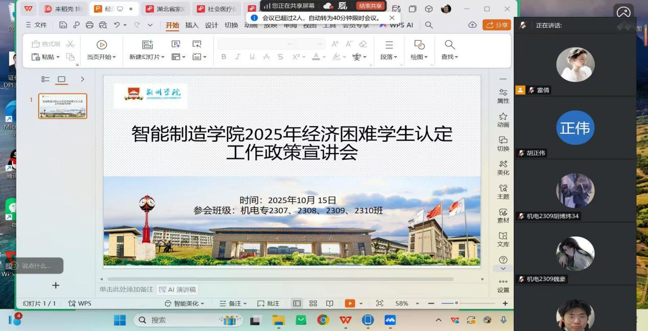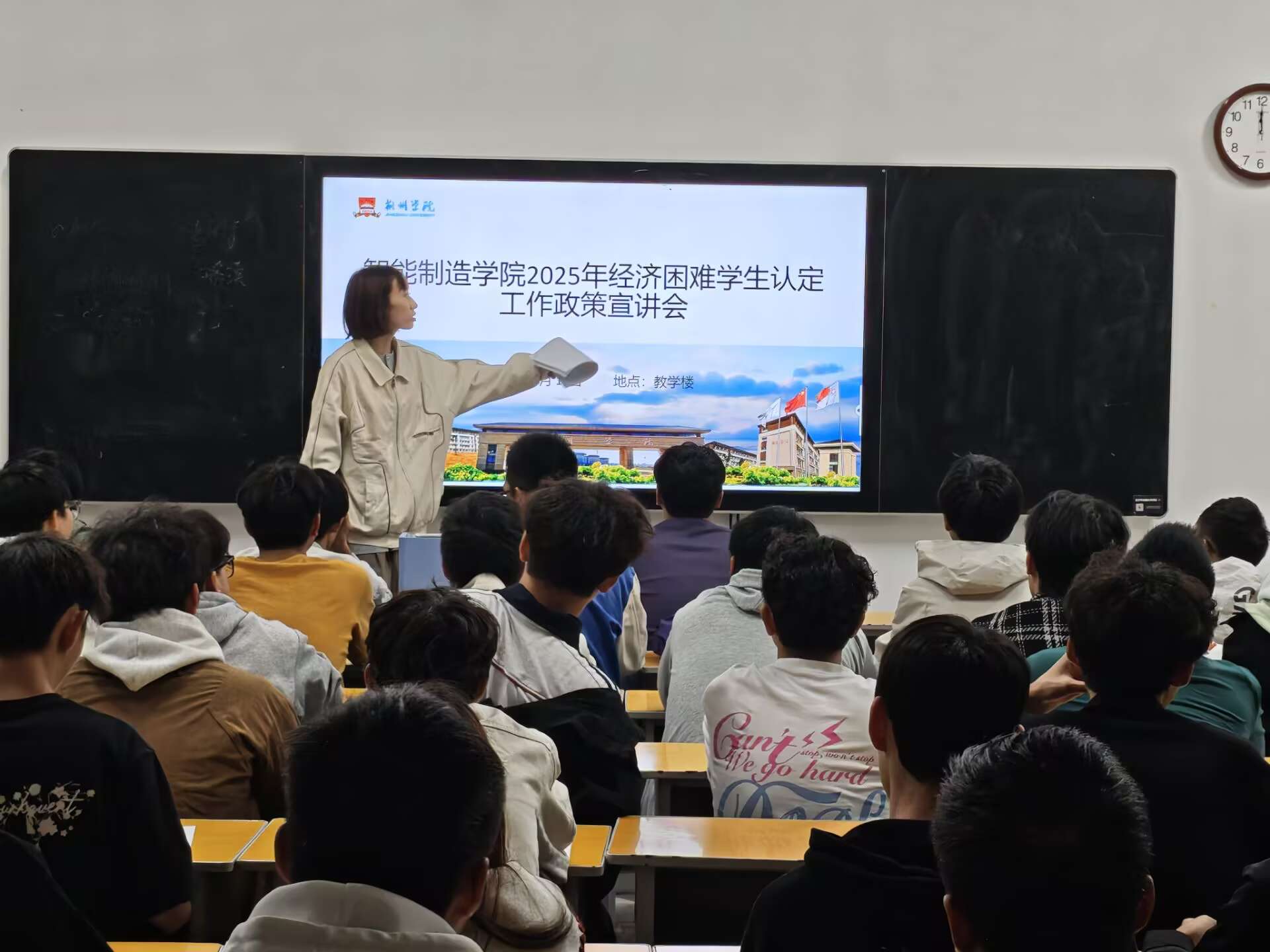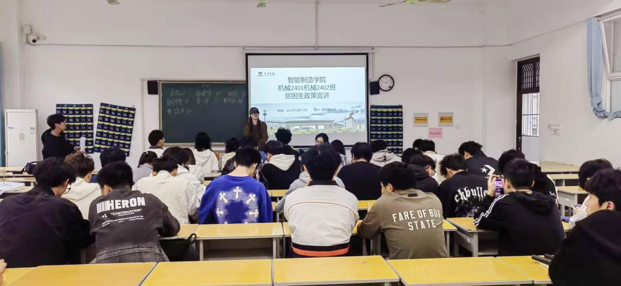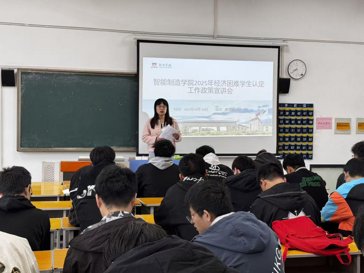 (本网讯 晏学渊)为确保国家资助政策精准落实,帮助家庭经济困难学生顺利完成学业,10月14日-16日,智能制造学院2025-2026学年贫困生认定工作正式启动。学院高度重视此项工作,积极部署,全面组织各班级召开贫困生认定工作政策宣讲班会,旨在让每一位学生深入了解政策,确保认定过程的公平、公正、公开。