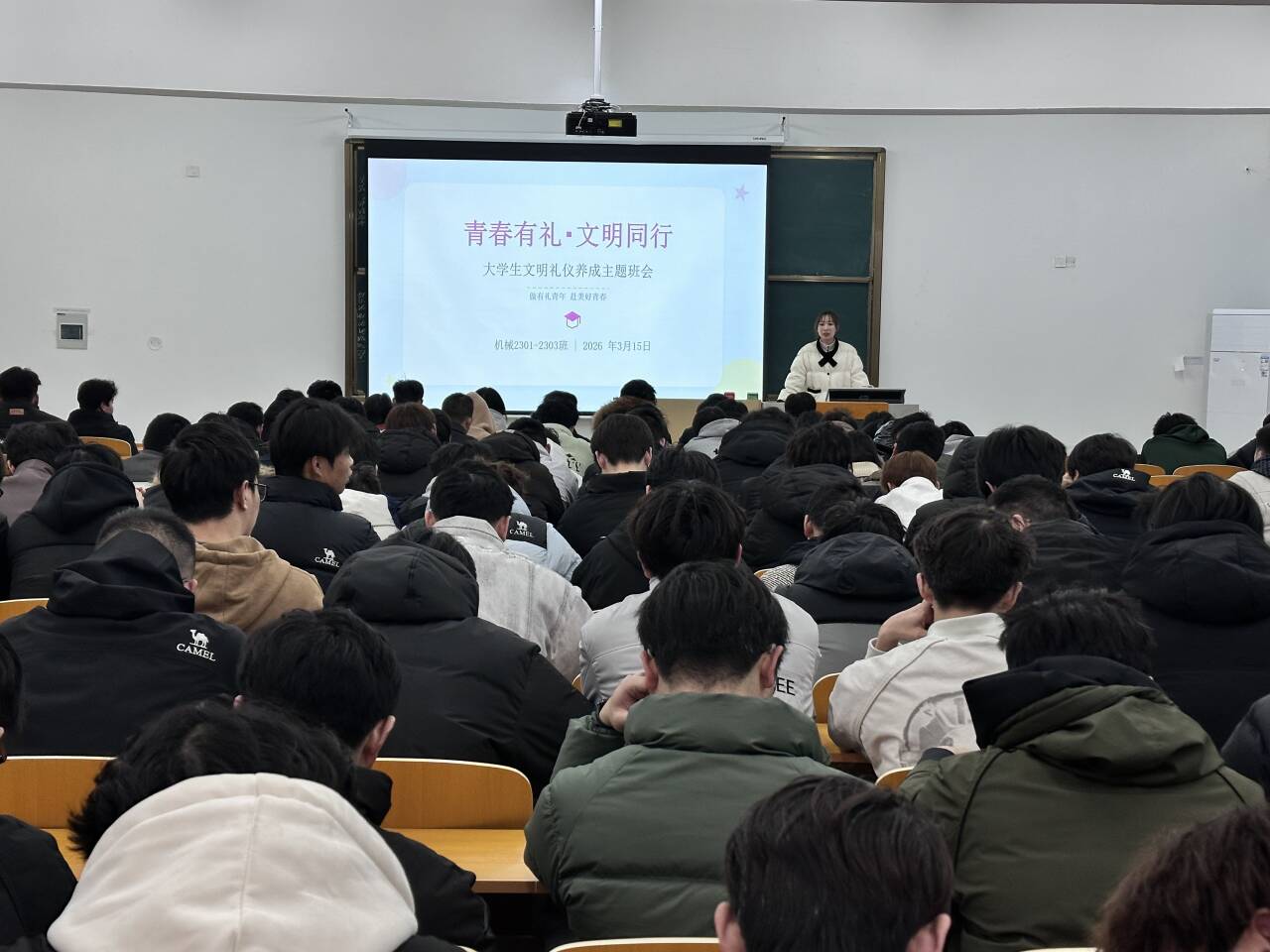 (通讯员 晏学渊)为进一步推进校园文明建设,引导学生涵养良好行为习惯、树立文明礼仪意识,3月15日-16日,智能制造学院组织全院各班级召开了以“青春有礼 文明同行”为主题的文明礼仪养成教育班会。本次班会由各班辅导员主持,全体学生积极参与。
