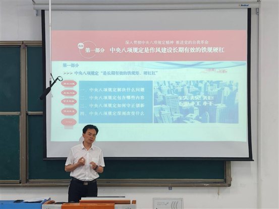 本网(通讯员 黄思琦)2025年4月17日中午,马克思主义学院直属党支部在5205教室组织开展中央八项规定精神学习专题党课。学院全体党员教职工参加学习,马克思主义学院直属党支部书记、院长邹发伟进行专题授课。