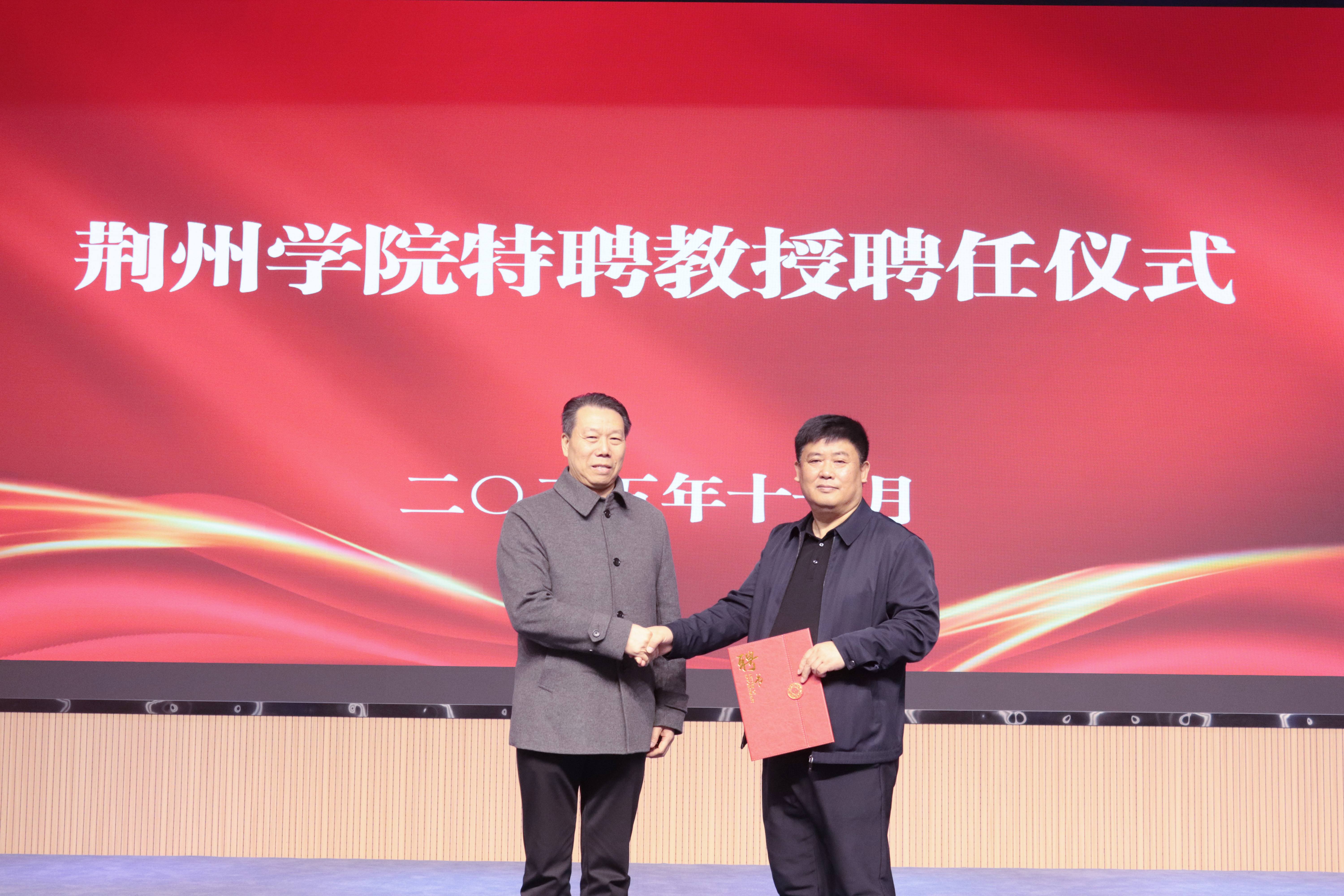 接下来授聘仪式上,荆州学院党委副书记、校长戴国强正式为杨保教授颁发特聘教授证书。戴国强指出,聘请杨教授是学校强化双创教育力量的关键一步,旨在建立顶尖专家引领的常态化合作机制。他相信,杨教授的深厚学识与前瞻视野,将对学校创新人才培养体系产生深远而持续的积极影响,为学校提升育人质量、培育更多优秀创新人才注入持久动力。