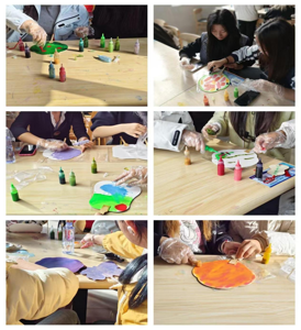 活动伊始,鸽梦小筑工作人员细致讲解了注意事项,并耐心解答同学们在制作过程中遇到的问题,同时对大家精心完成的每一件漆扇作品给予由衷赞赏。现场准备了空白扇面、各色颜料、一次性手套等物资,井然有序的准备工作为活动的顺利开展提供了有力保障。