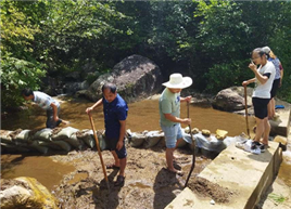 五是协助解决群众饮用水问题。由于连日高温干旱不下雨,部分农户反映水量不足,群众用水受到影响。7月15日,驻村工作队与村两委多次上山查看水源地流量和引水口漏水点,分析除了天气降水少原因导致山上溪流的径流量变小,引水口蓄水池底部有漏水情况,水位难以到达引水口,于是大家现场装沙袋铺上塑料薄膜垒防水墙,将水位加固至引水口水位线以上,最终顺利解决村民饮用水保障问题。