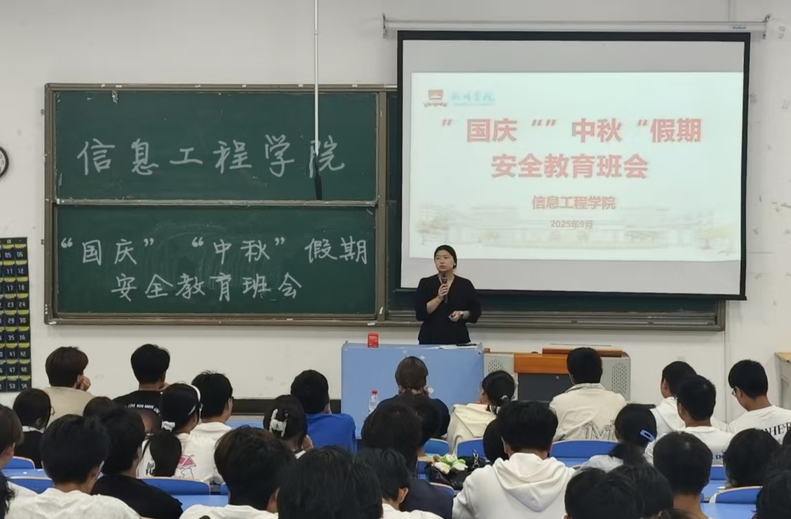 本网讯(通讯员 闫俞彤)为筑牢学生假期安全防线,增强同学们的安全防范意识与自我保护能力,信息工程学院辅导员于9月28日晚分别给所带班级学生开展“国庆假期安全”主题班会。