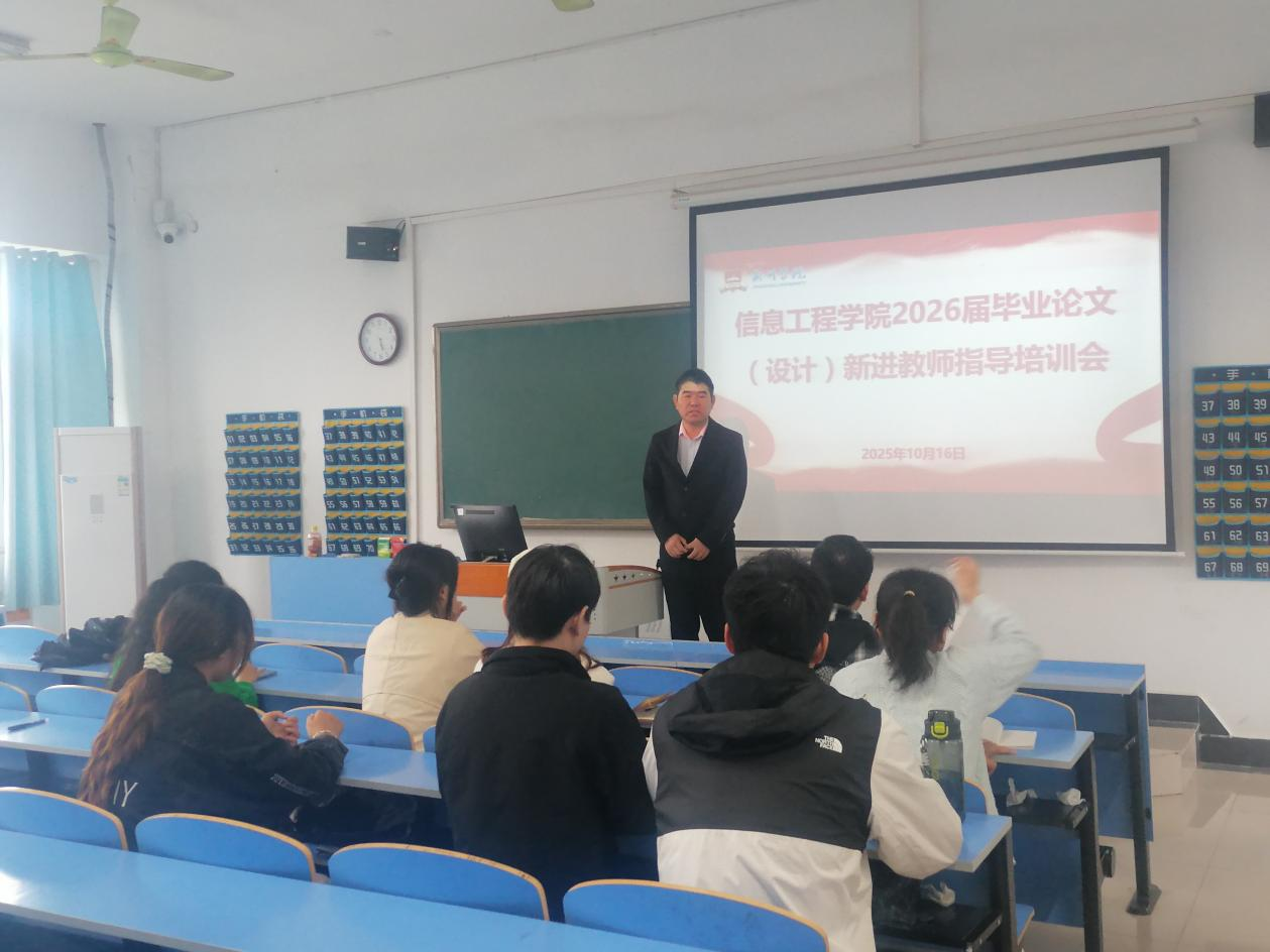 本讯网(通讯员 张继成)为切实提升信息工程学院本科毕业论文(设计)质量,规范论文撰写格式,保障2026届毕业生毕业设计工作顺利推进,10月16日在6506教室召开了新进教师毕业论文(设计)指导培训会,会议由信息工程学院副院长张继成主持。