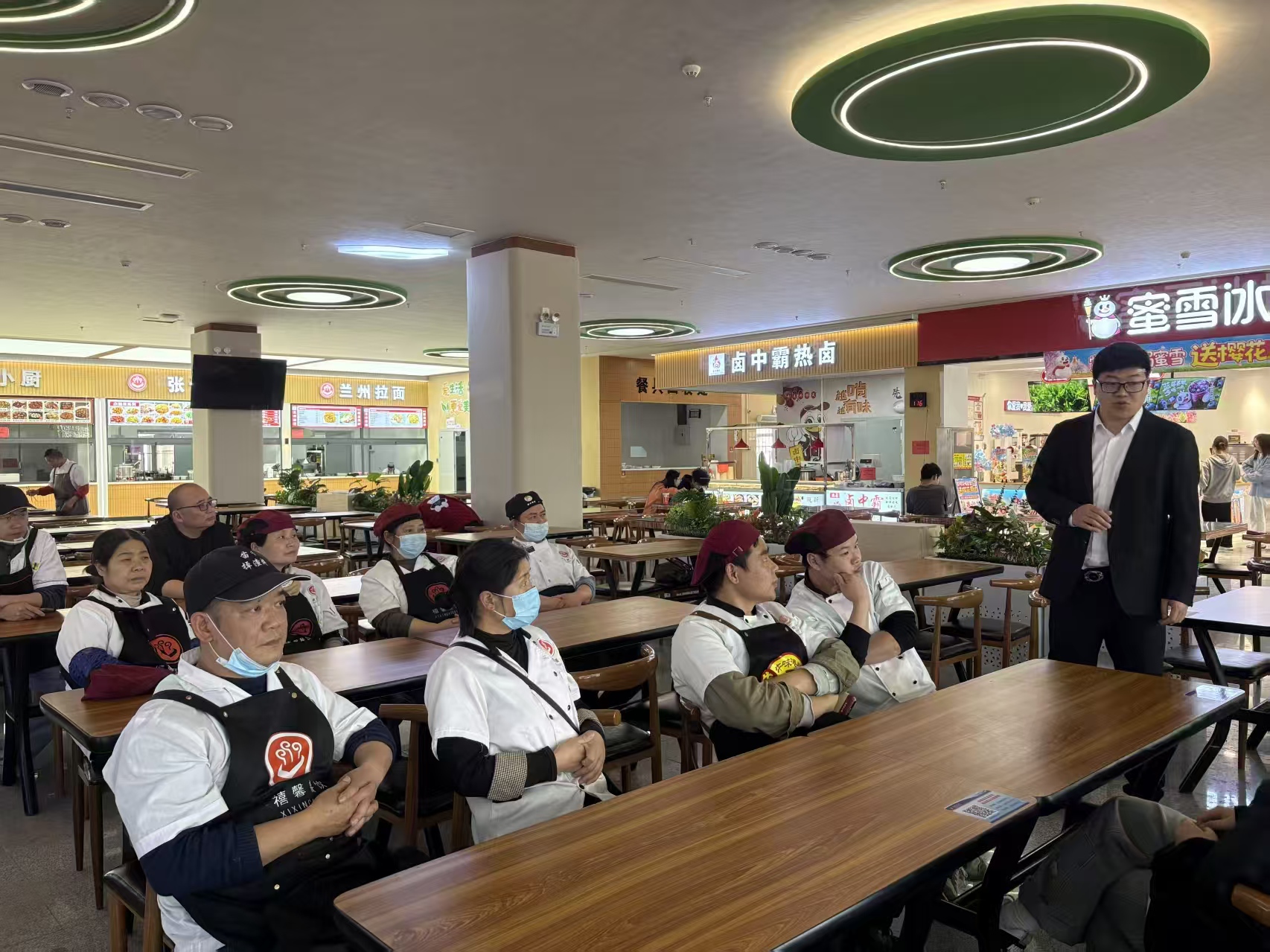 2026年4月1日,荆州学院膳食服务中心在荆香餐厅一楼组织开展食品安全事故应急演练及商户现场培训活动,旨在强化食品安全风险防控,提升应急处置能力,筑牢校园食品安全防线。