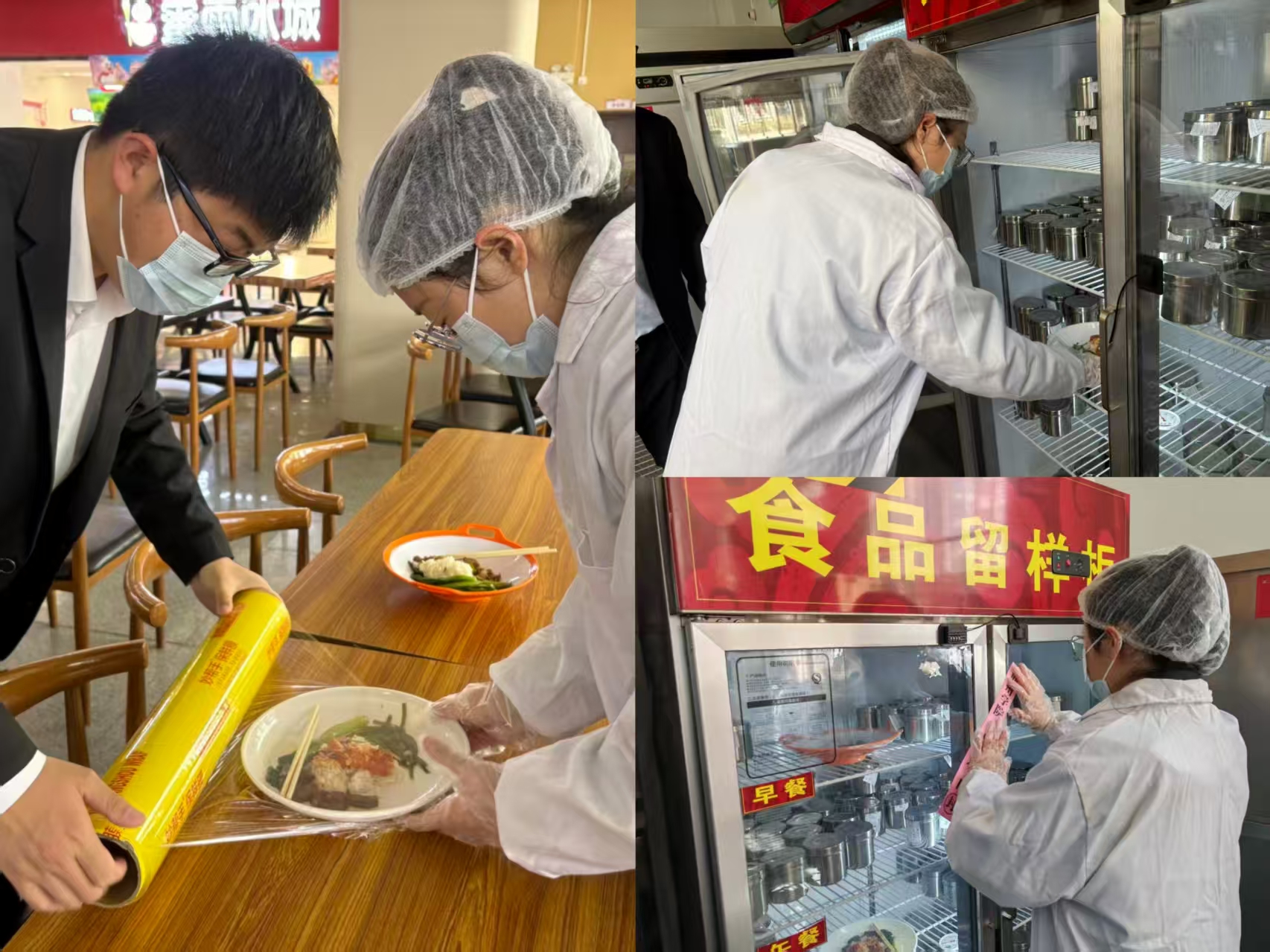 同步封存可疑食品及原料,保护现场并配合后续调查。演练过程紧张有序,各环节衔接紧密,全面检验了食堂应对突发食品安全事件的快速响应和协同处置能力。